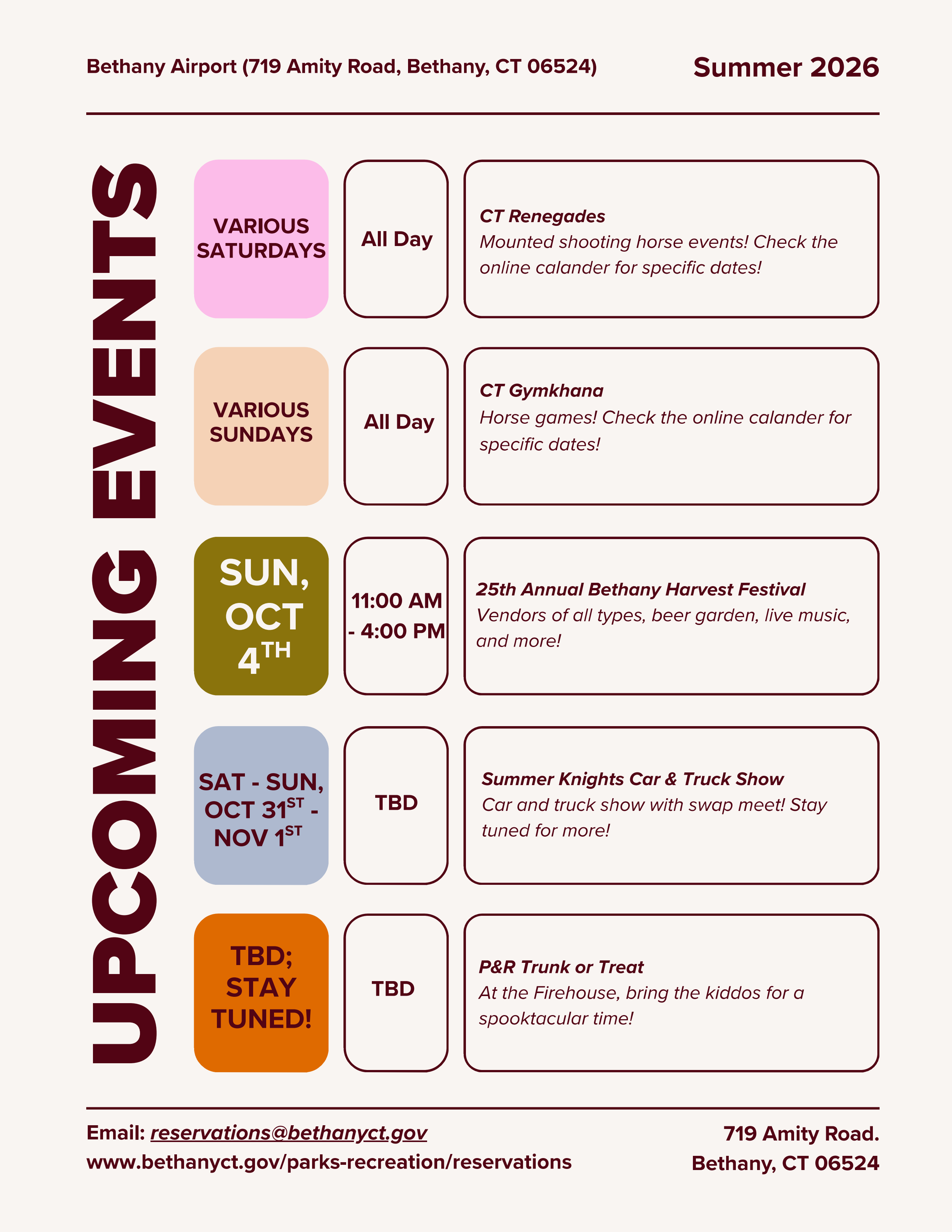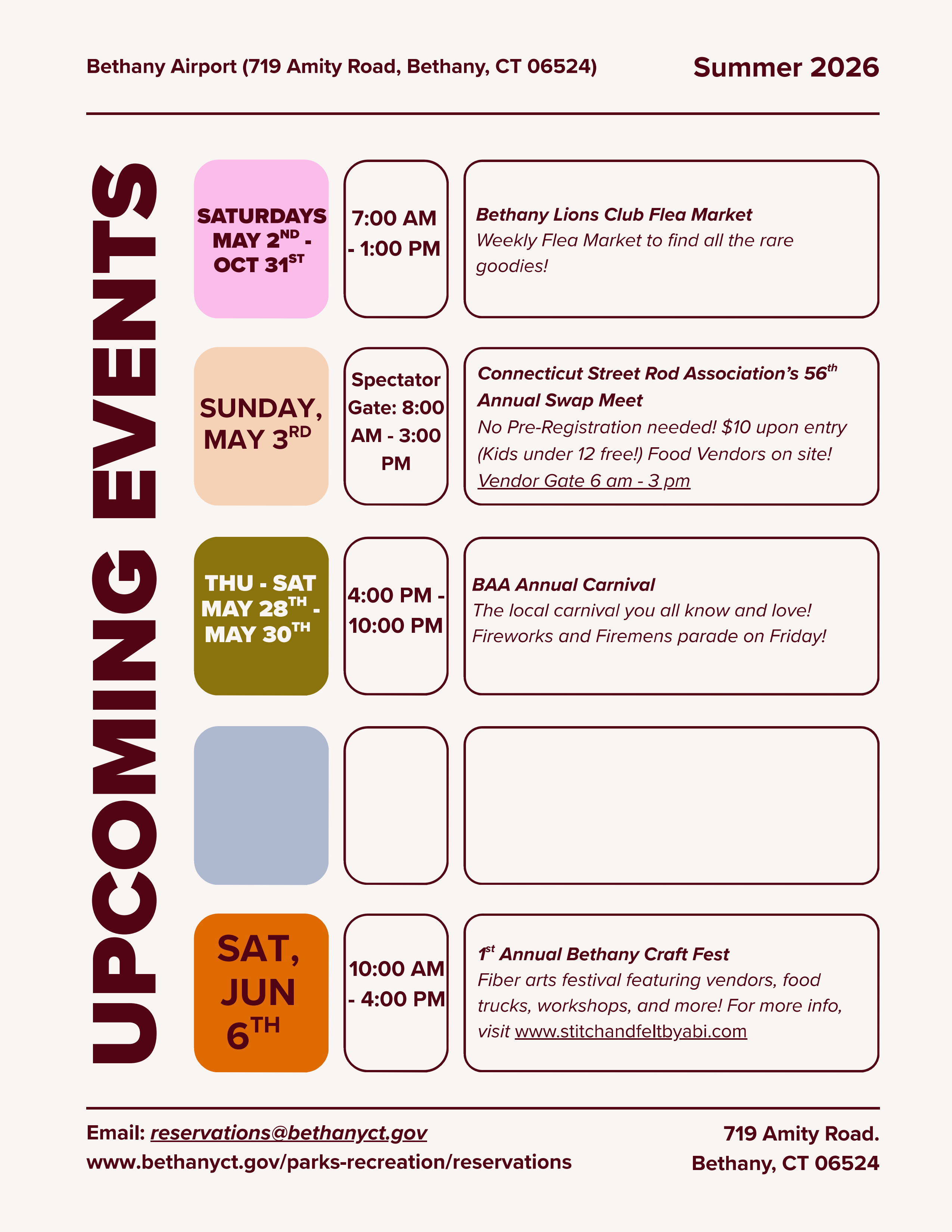 The Bethany Airport has a packed season ahead. Check out the flyers for the full summer schedule and plan your visit.