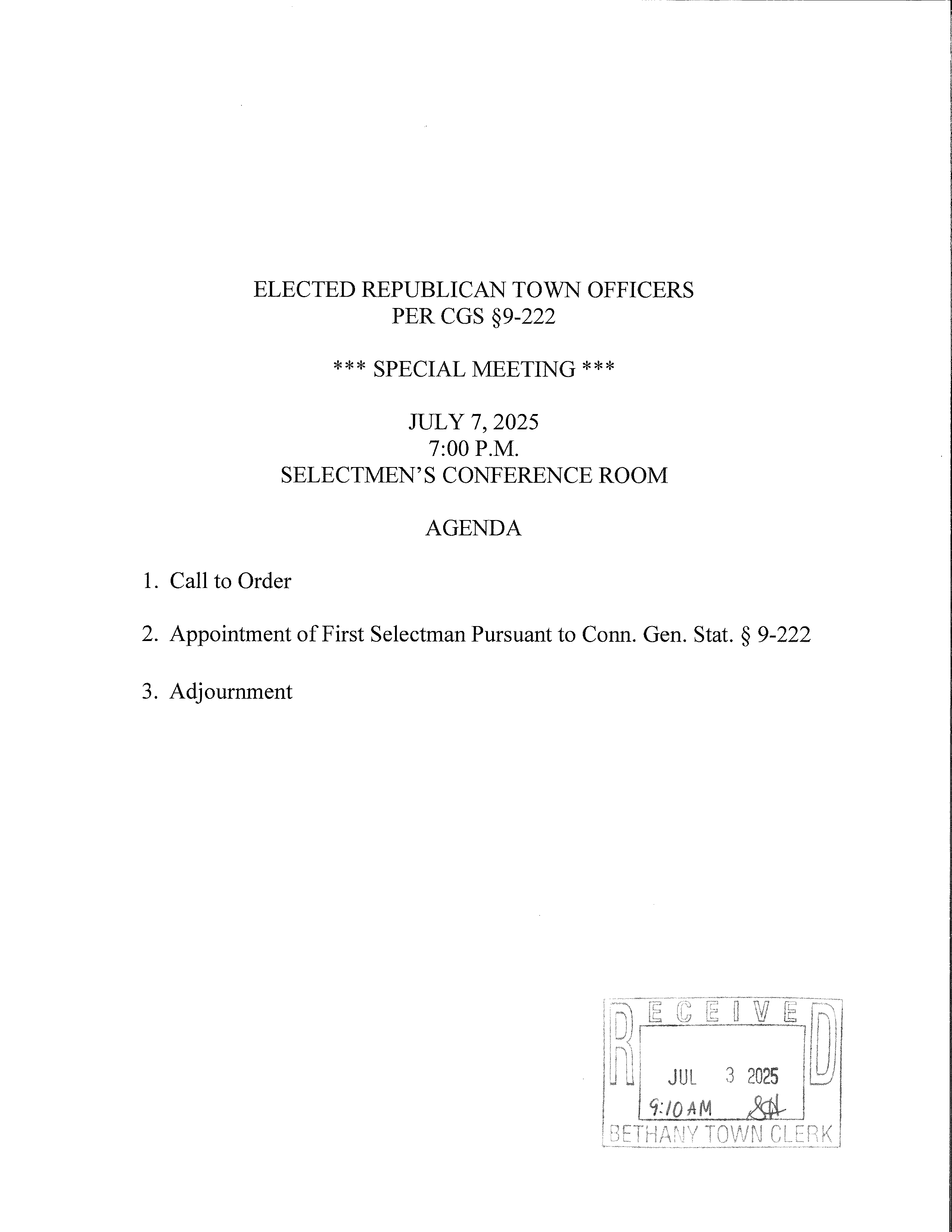 7/3/2025 - Elected Republican Town Officers- Special Meeting 7-7-2025