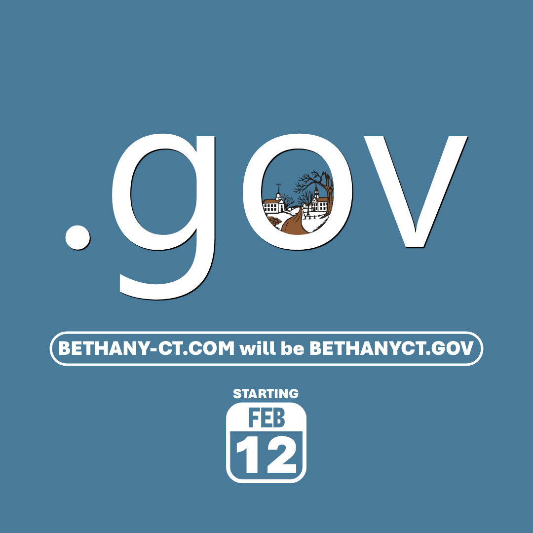 Beginning February 12, the Town’s website and email addresses will use bethanyct.gov. A .gov domain is reserved exclusively for government entities and is widely recognized as a trusted, secure, and authoritative online presence.